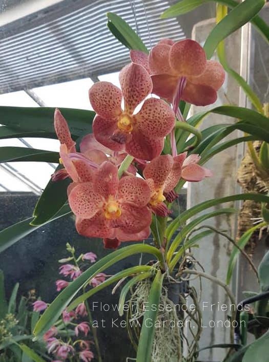 在威爾斯公主溫室(Princess of Wales conservatory)蘭花室中,除了見到「打開愛花精」,還有許多的萬代蘭,這次見到的是比較淺紅色的萬代蘭。LTOE蘭花花精中有不少萬代蘭一家:藍色天使、恩典之中,跟這款「揚升火焰」,另有文章說明收錄萬代蘭介紹,可點此。