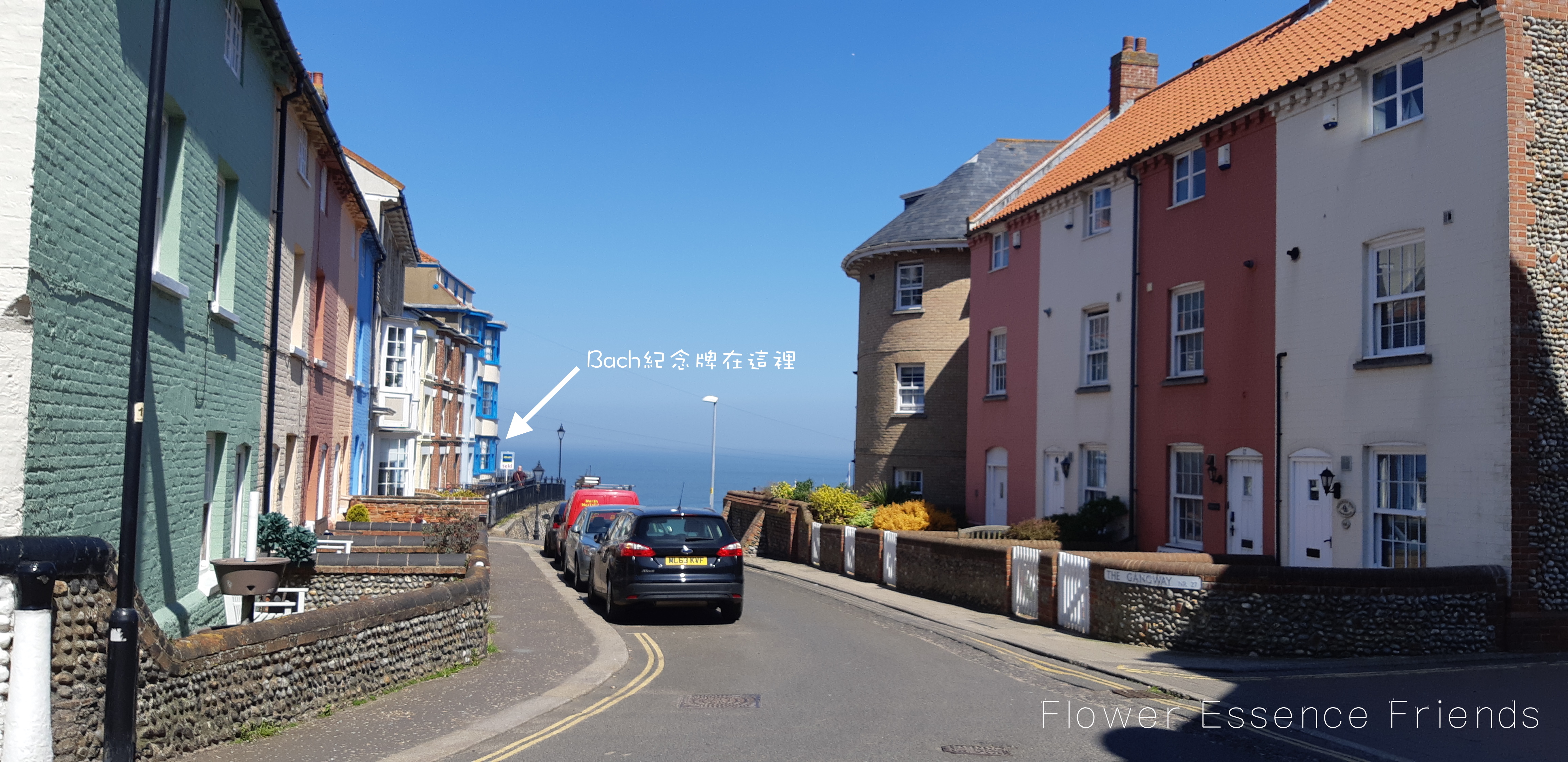 在靠近海灘的這間小屋,巴哈醫師在1930~1934曾拜訪這裡度假,紀念牌上寫著巴哈醫師是同類療法的醫師與心靈作家,在Nora Weeks寫得巴哈醫師自傳,就提到他住在此地時經常在海岸懸崖旁步行,也在這一帶找到了不少巴哈花精的花,完成了最早巴哈花精12 healers的系統與著書。(例如:龍芽草Agrimony、矢車菊Centaury、菊苣Chicory、水蕨Cerato、馬鞭草Vervain、線球草Scleranthus與橡樹Oak)...