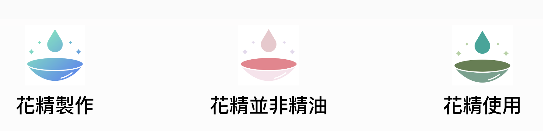 花精主要採舌下使用法,其微細能量並非生化作用、而是屬於物理震動以具體化每朵花的能量模式,來處理深度的情緒與身心靈性發展。