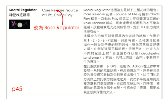 p45 複方配方:Source of Life, Child's Play, Core Release改為Base Regulator。