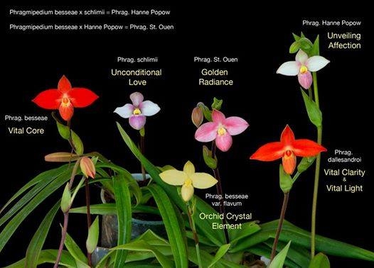 蘇格蘭中心在2017年8月分享了上面兩張蘭花全家福與說明圖,這幾個拖鞋蘭彼此有血緣關係。