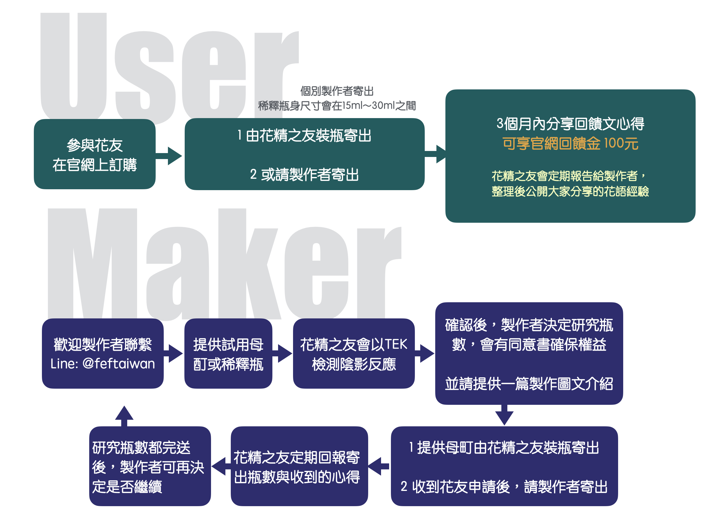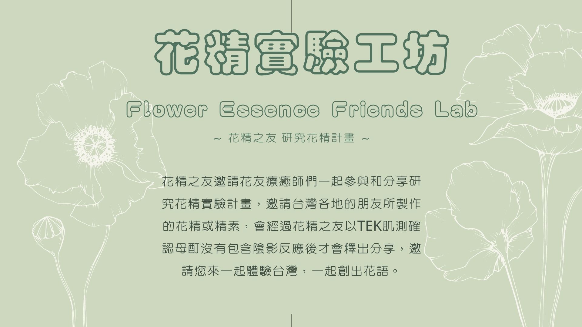 自製花精或精素,會經過花精之友以TEK肌測確認母酊不受陰影反應後、才會釋出限量瓶分享。邀請您來一起體驗台灣,一起創造花語。