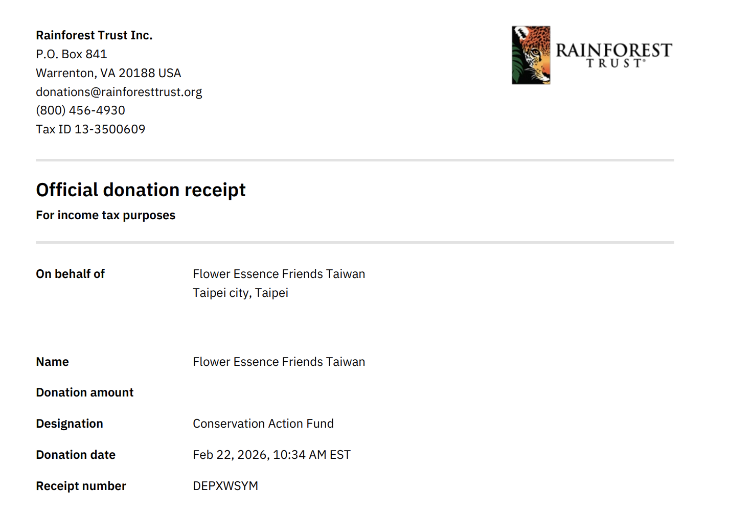 * 2017年春天捐款支持印度的雨林中心Gurukula Botanical Sanctuary,這是位於印度西南角的山區,創辦於1981年、致力於保育野生植物和雨林保育教育。