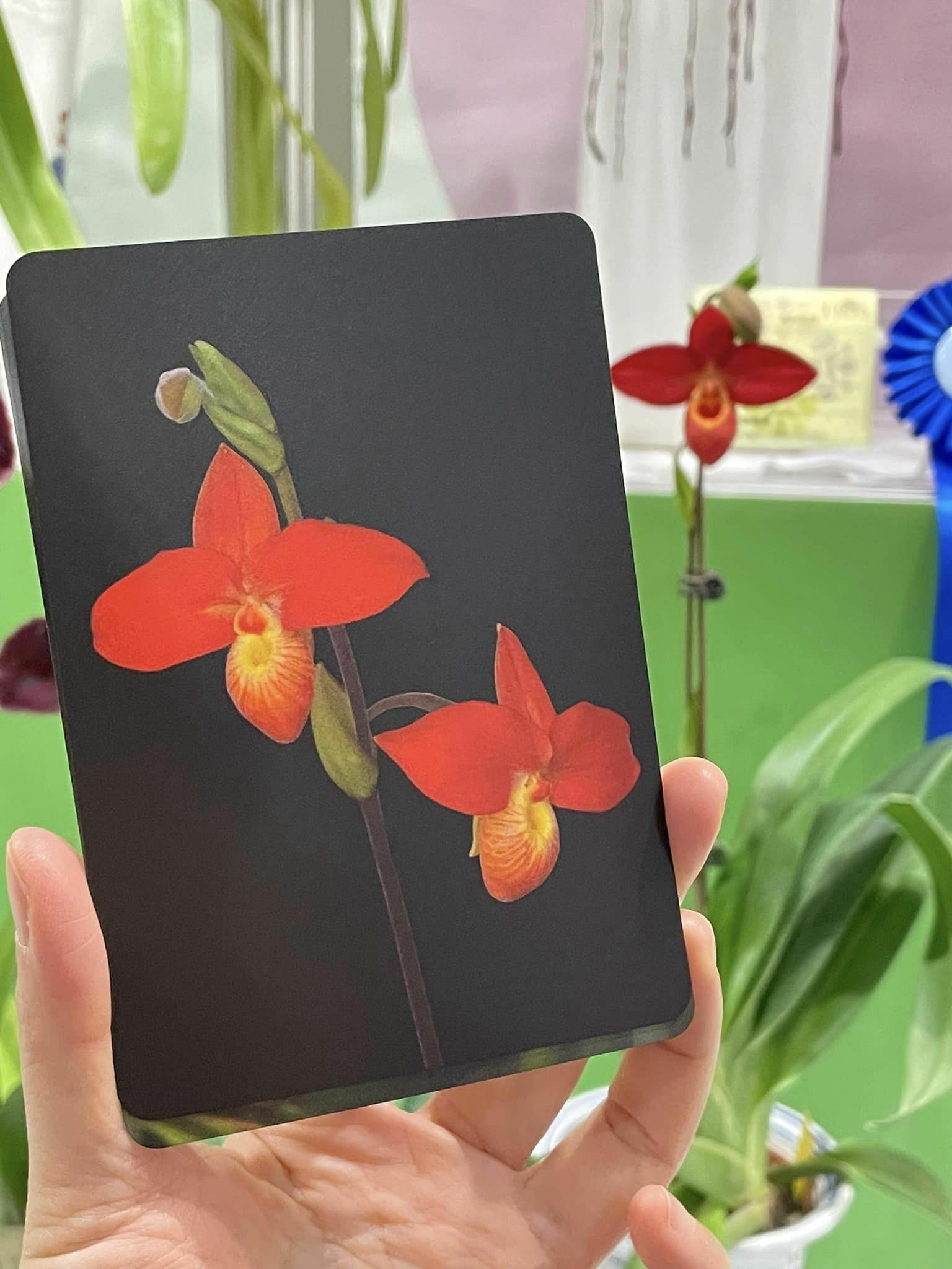 「真實連結 True Connections」三株軛瓣蘭之一,主持人就帶回了一盆帶到當晚的台南花友冥想會一起與會(花友會報導點此)