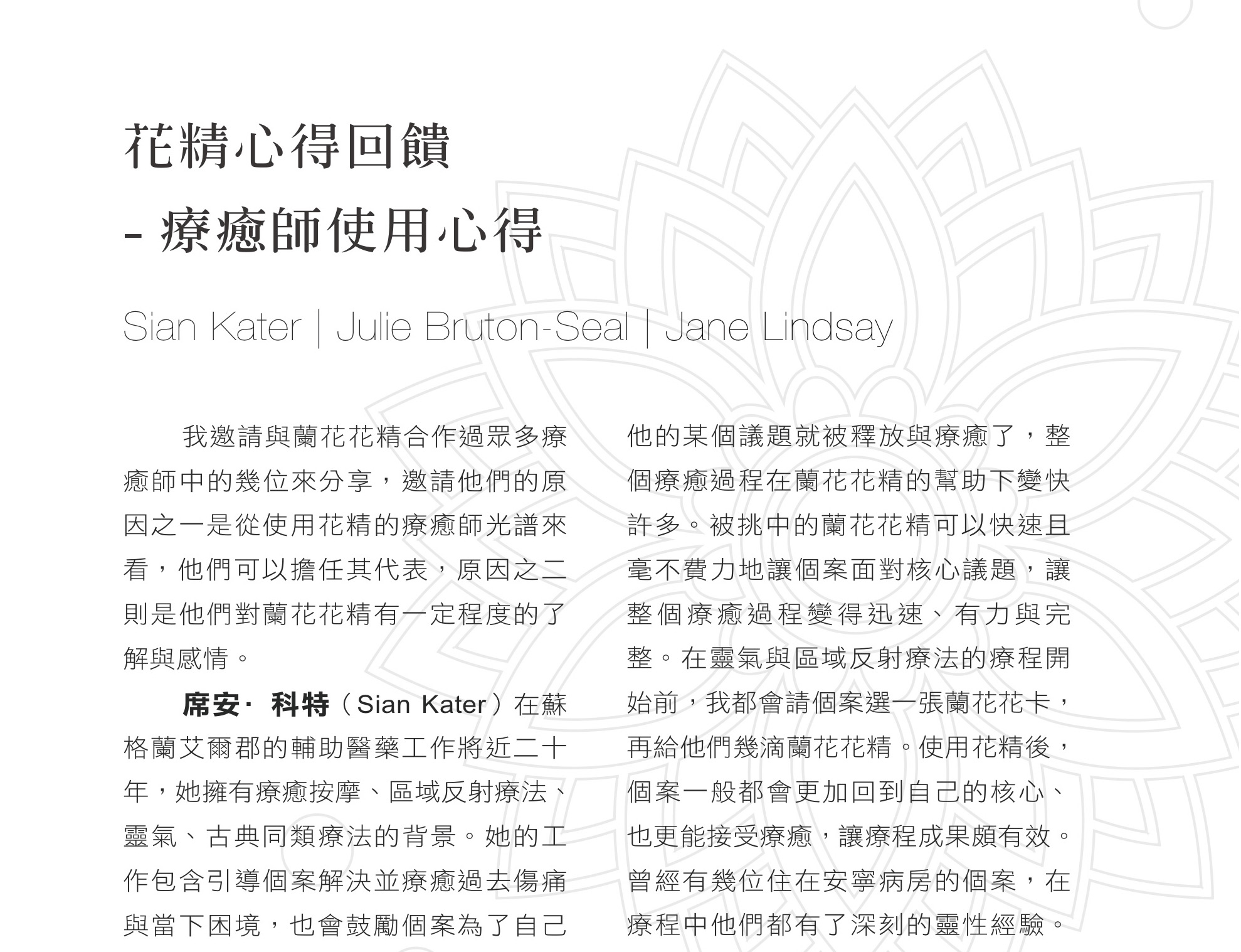 「台灣療癒師心得」是因為《蘭花花精療癒全書》而邀稿的系列,書中因篇幅部分有刪減一些細節,我們將完整版本放在官網讓大家參考。