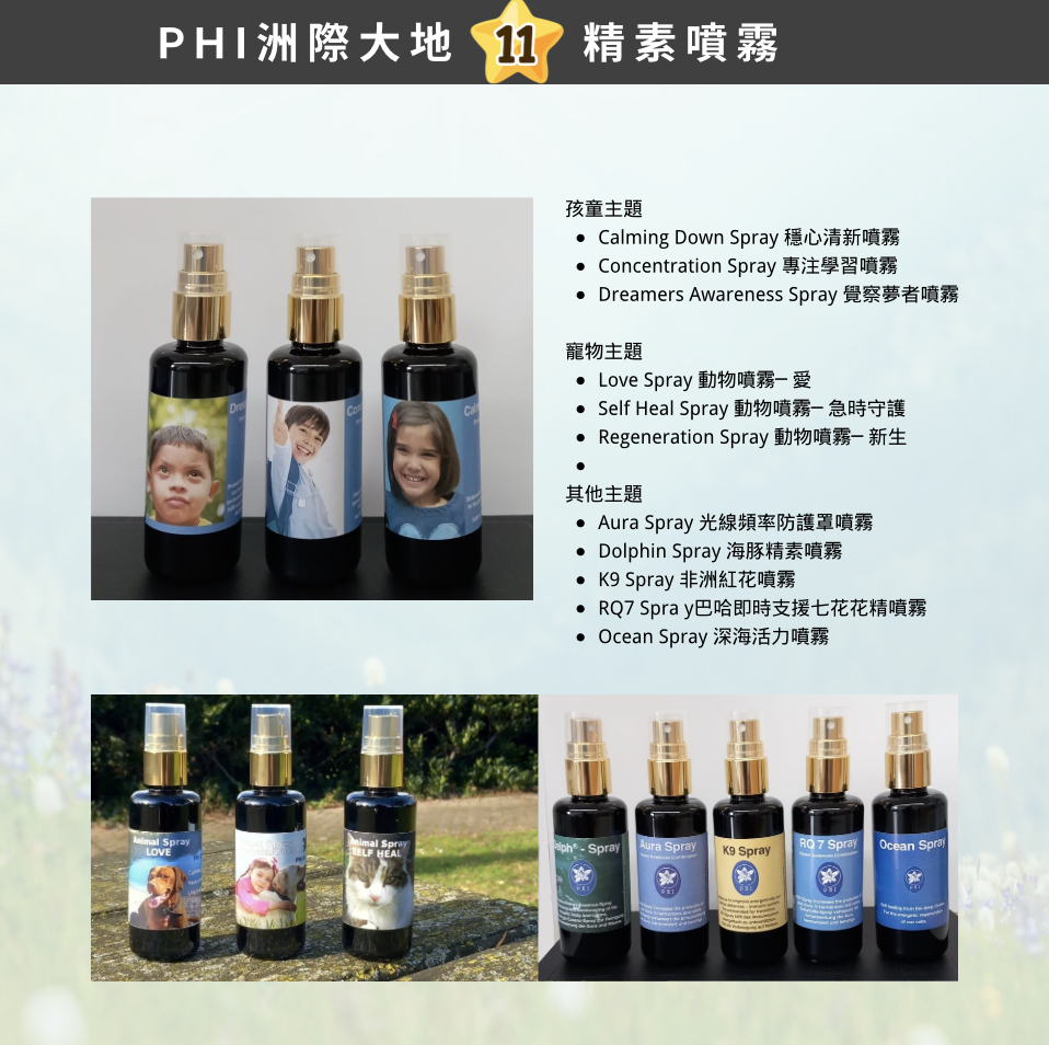 PHI的花精與精素滴瓶可以用於口中體驗或作為外用方式,例如可應用於肌膚表層,或用來平衡脈輪能量。也可以將花精滴入泡澡水中。或可以在乳液中加入7-9滴來使用。
