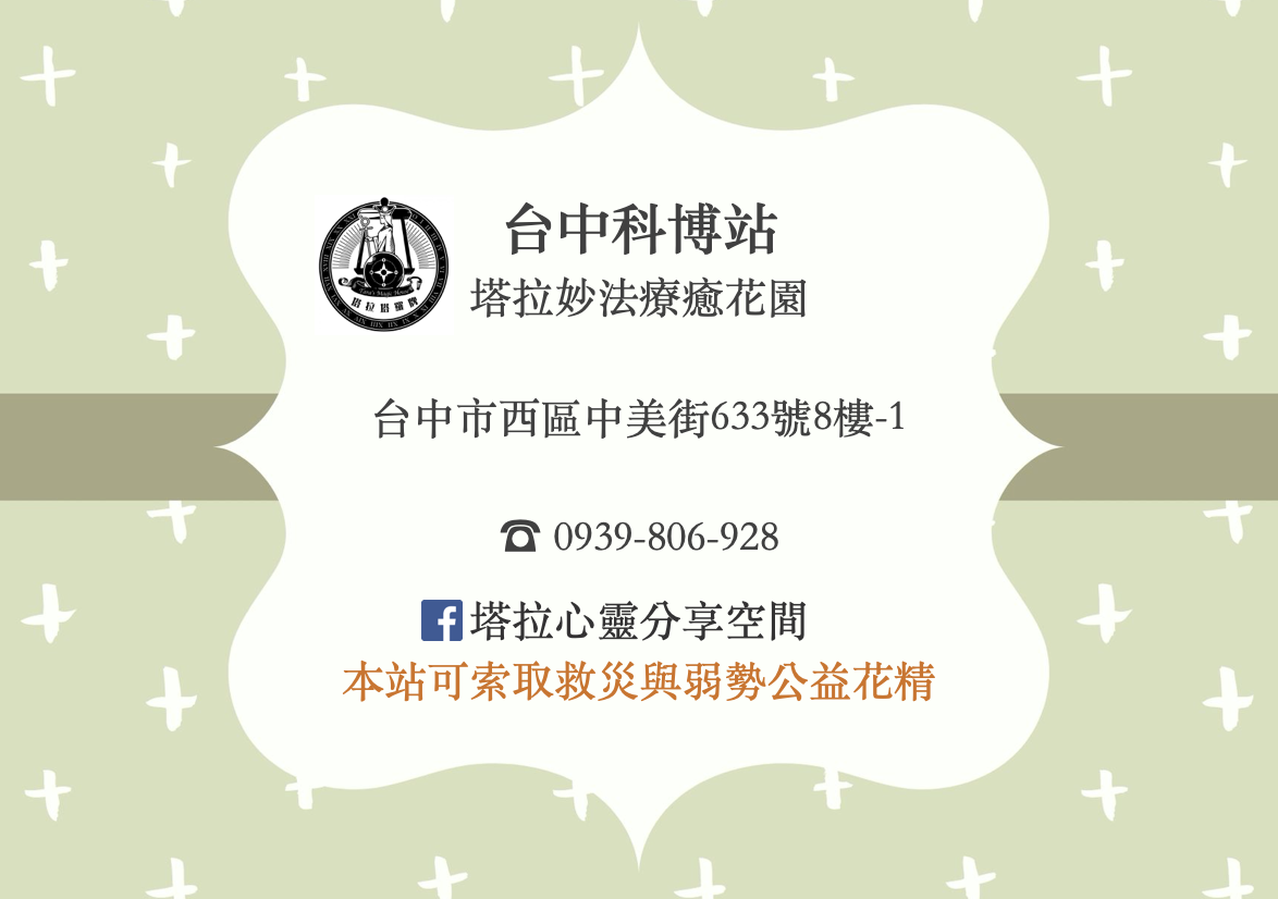 【版權所有】花精之友商標 x 總代理商接觸大地實業有限公司(統編:24768214) Copyright 2016 by Touching Earth Ent. Co.,Ltd. 本網站圖文皆有國外花精原廠授權翻譯使用,引自《花精之友應用手帖》、《花精之友應用手帖2》、《蘭花花精療癒全書》、《PHI洲際大地 ─世界花精與精素百科全書》。