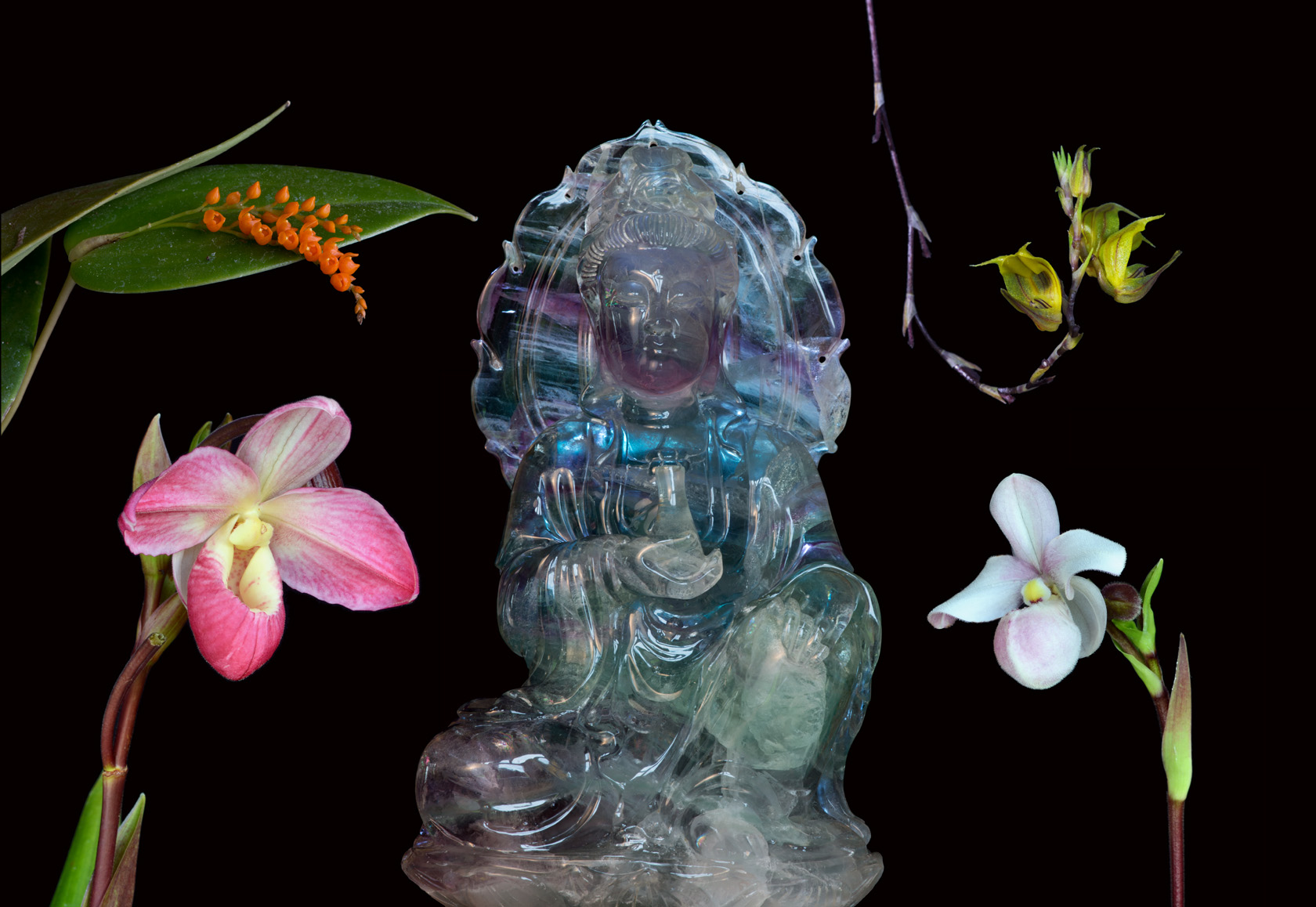 另一個與水火之逆期間有關的花精,就是靈魂之光複方(Light of the soul),畫面上有螢石觀音坐鎮,加上幾種皆是更高脈輪的蘭花花精群,幫助人用更高的視野看到現在行運的影響,不論好處或挑戰,讓您能看到所遇事件的靈魂目的。