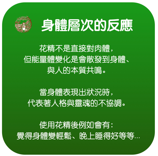 *減輕反應:可以減少一天使用次數,例如一天1-2次就好。通常越纖細的人就越容易有感受,這時可以減少滴數來使用,同時也可以去調整花精配方。