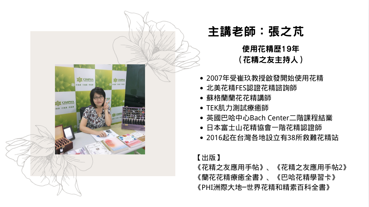 【版權所有】花精之友商標 x 總代理商接觸大地實業有限公司(統編:24768214) Copyright 2016 by Touching Earth Ent. Co.,Ltd. 本網站圖文皆有國外花精原廠授權翻譯使用,引自《花精之友應用手帖》、《花精之友應用手帖2》、《蘭花花精療癒全書》、《PHI洲際大地 ─世界花精與精素百科全書》。